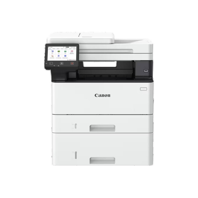 The Canon imageFORCE 1440 is a versatile multifunction office machine designed to streamline productivity in any workspace. With its ability to print, copy, scan, and fax, it meets all office needs efficiently. The device supports a variety of connectivity options including Gigabit Ethernet, USB 2.0, and Wi-Fi, making mobile printing easy through Apple AirPrint and other services. The 5" LCD display enhances user interaction while navigating its numerous features, including automatic duplexing and multiple copy functions such as ID Card Copy and Frame Erase Copy, providing flexibility for daily tasks.With a max printing speed of 65.4 pages per minute and a print resolution of 1200 x 1200 DPI, the Canon imageFORCE 1440 ensures documents are produced quickly and with clarity. Its standard media capacity of 900 sheets accommodates large workloads, while the robust security features including LDAP and TLS ensure that sensitive information remains protected. Benefiting from energy-efficient operation and compliance with environmental standards like Blue Angel, this machine balances performance with sustainability, making it an ideal choice for any modern office.