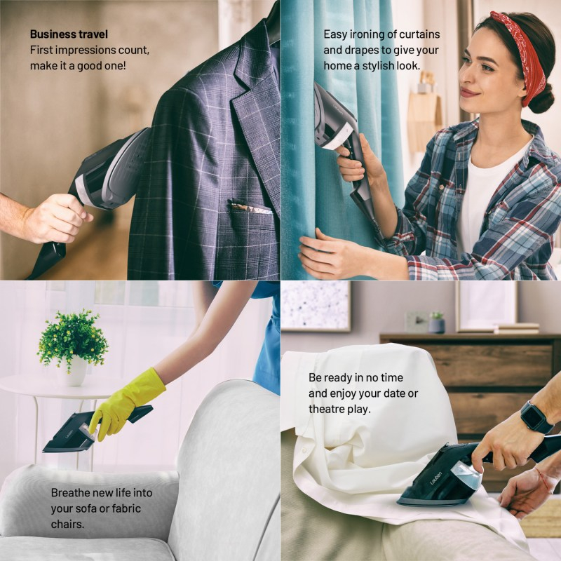 Lauben Handheld Steam Iron 1950BC bo v celoti nadomestil klasični likalnik in se pri tem ne bo ustavil. Vroča para dezinficira površine, s čimer se učinkovito bori proti bakterijam in neprijetnim vonjavam. V gospodinjstvu je tako primerna tudi za likanje zaves ali osvežitev oblazinjenega pohištva, za čiščenje katerega boste uporabili priloženo natično krtačo. Se odpravljate na zmenek, se vam mudi v službo ali ste na poti? Oblačila boste v hipu polikali tudi na suho s funkcijo Dry Ironing, zahvaljujoč likalni plošči, ki se zaključuje v konico, pa boste dosegli tudi slabo dostopna mesta, na primer med gumbi.