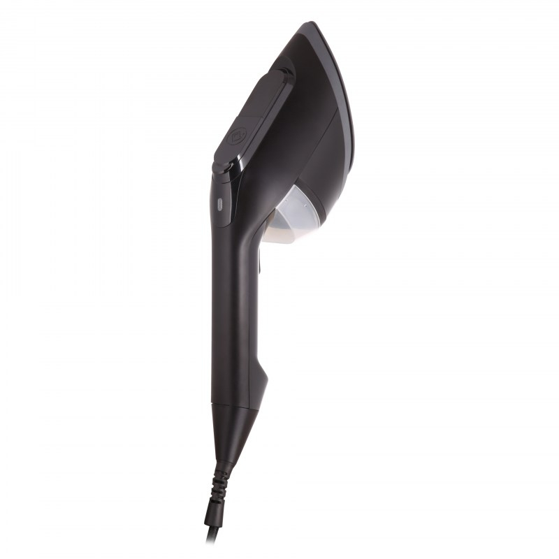 Mat črna površina v kombinaciji s keramično likalno ploščo s koničastim zaključkom sta modernega videza, predvsem pa sta funkcionalni. Zahvaljujoč koničasti obliki boste udobno dosegli na primer ovratnik ali med gumbi.