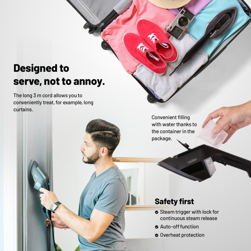 Lauben Handheld Steam Iron 1950BC – parni likalnik za oblačila za popoln rezultat z minimalnim naporomLikalna deska in likalnik zadržujeta in včasih preprosto ni časa za junaštvo. Zdaj lahko imate obl..