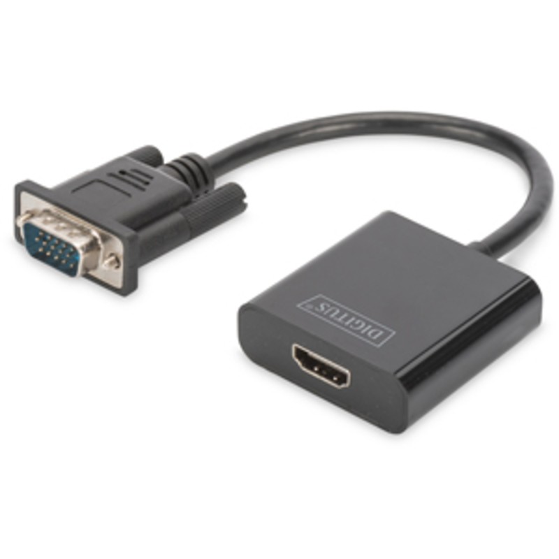 Digitus VGA v HDMI pretvornik + avdio (3,5 mm), Full HD (1080p), Tehnični podatki: Pretvori video in zvočne signale iz VGA v HDMI Starejše naprave povežite z vrati VGA, npr. TV, monitorji ali projek..