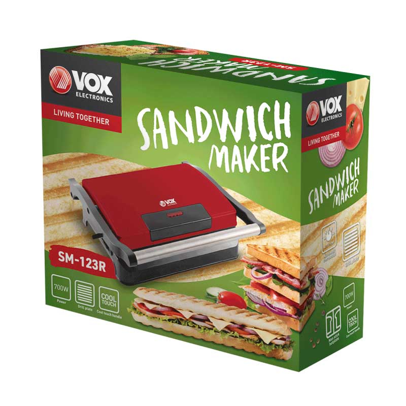 Naprava za sendviče VOX SM 123R je popoln spremljevalec za pripravo okusnih sendvičev z lahkoto. S svojo močjo 700 W in nelepljivimi ploščami zagotavlja hitro in enakomerno segrevanje, medtem ko samod..