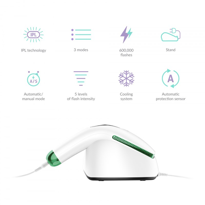Epilator ima vgrajen varnostni senzor, ki preprečuje oddajanje bliskov v odprt prostor. Blisk se odda le v trenutku, ko je v neposrednem stiku s kožo.