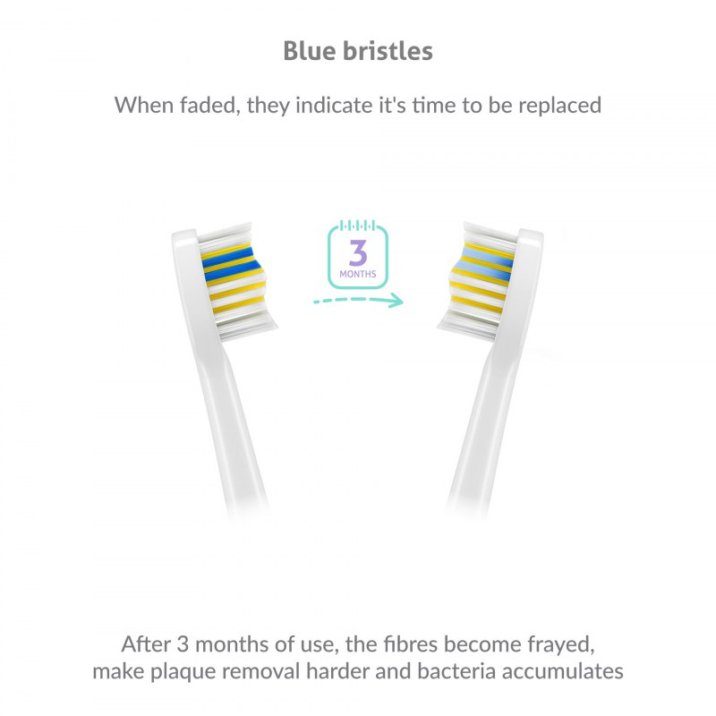 Glave imajo modre ščetine, ki opozarjajo na mero obrabe. Zelo enostavno boste prepoznali, kdaj je treba zamenjati glavo.