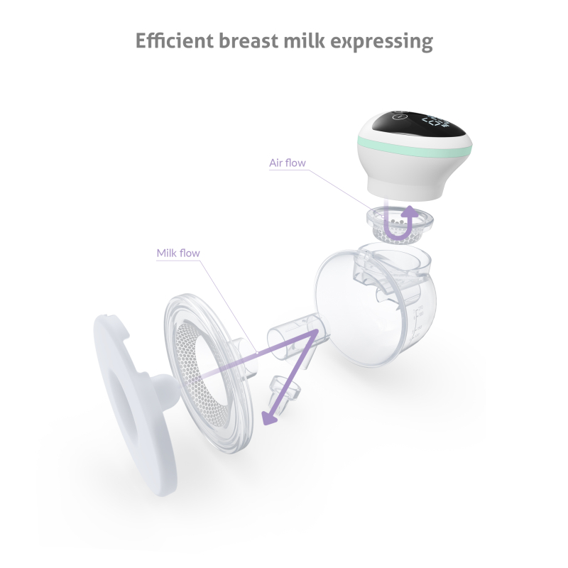 Celostna zasnova prsne črpalke, ki vas ne obremenjuje z nepotrebnimi cevkami in zunanjimi stekleničkami, je odlična pomoč tudi na poti. Prsna črpalka je opremljena z električno črpalko, sesanje pa poteka samodejno v posodo s prostornino 210 ml, iz katere lahko mleko udobno pretočite v stekleničko in jo shranite za kasneje. Namestitev naprave na prsi bo za vas prijetna zaradi mehkega silikona nastavka in hkrati varna, saj je izdelana iz neškodljive plastike brez BPA. Črpanje lahko izvajate tudi, ko dojenček ni lačen, dojka pa je napolnjena z materinim mlekom.