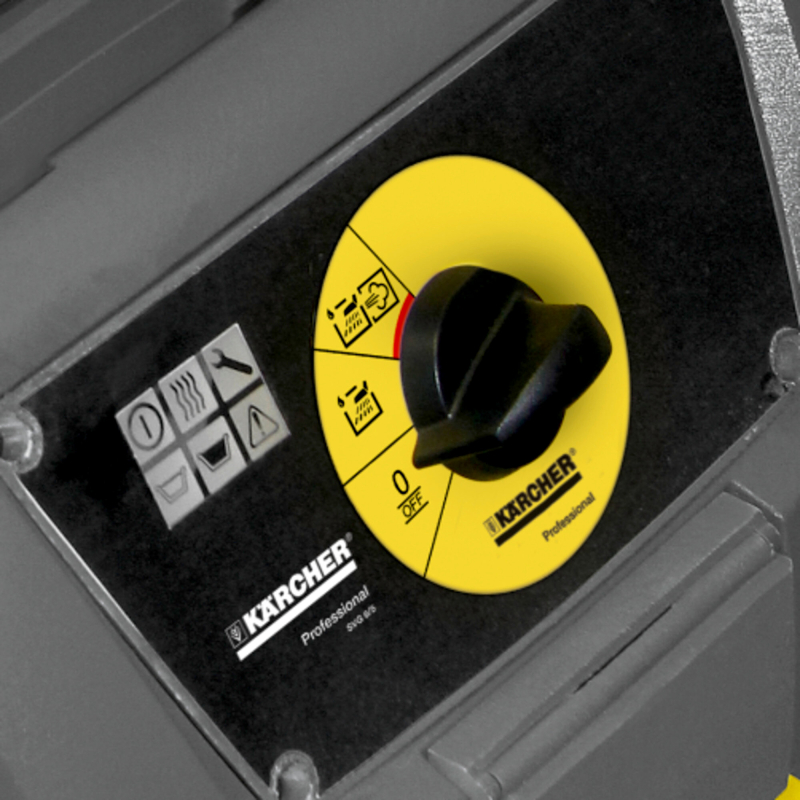 Uporabniku prijazen parni sesalnik SGV 8/5 Classic ponuja odlično vrednost za denar in impresivno učinkovitost čiščenja. Čiščenje je okolju prijazno, če se izvaja brez kemikalij in z visokim pritiskom pare (8 barov), temperatura tople vode cca. 70 °C in tristopenjski nadzor pretoka pare. Stroj je izjemno preprost in priročen za upravljanje z vrtljivim stikalom EASY Operation, s katerim lahko izberete tri načine delovanja s paro/vakuumom. Z uporabo ergonomske parne/sesalne pištole lahko med delovanjem krmilite pretok pare, funkcijo izpiranja in funkcijo vakuuma iz samega stroja za dodatno hitrost in prilagodljivost. Uporabnik lahko vedno vidi stanje delovanja ali morebitne napake preko barvnega LED zaslona. Da je obsežen nabor pripomočkov vedno pri roki, so ti shranjeni na samem stroju, zaščiteni pred umazanijo.