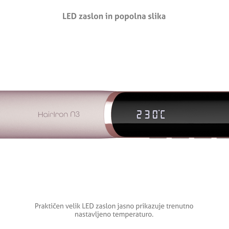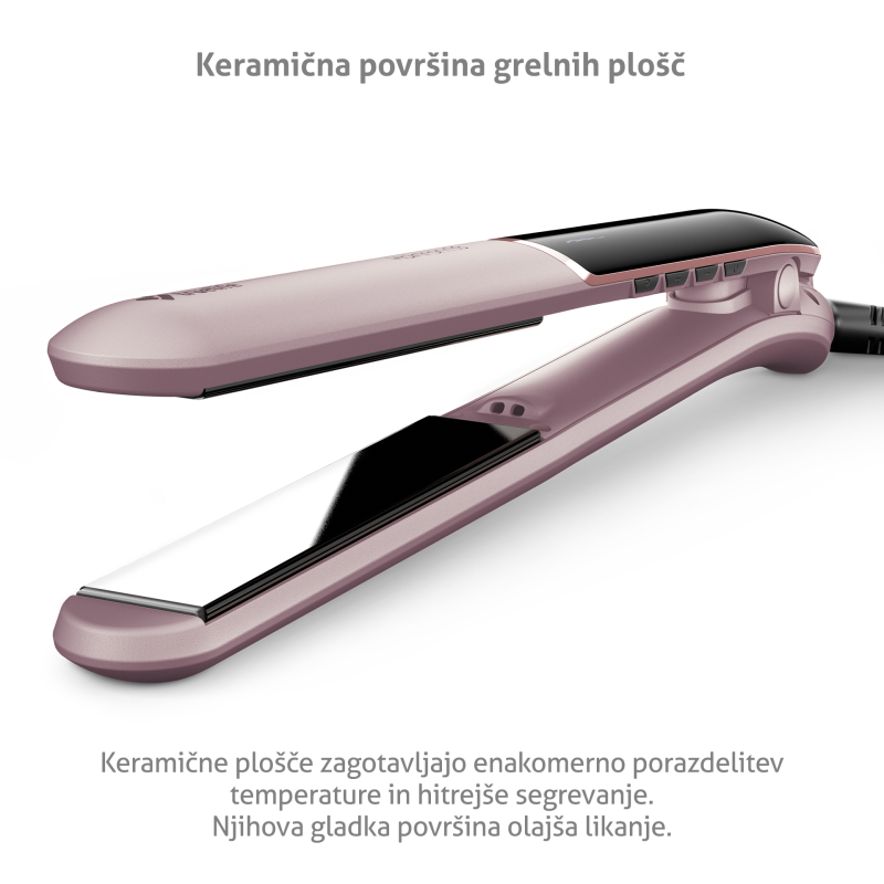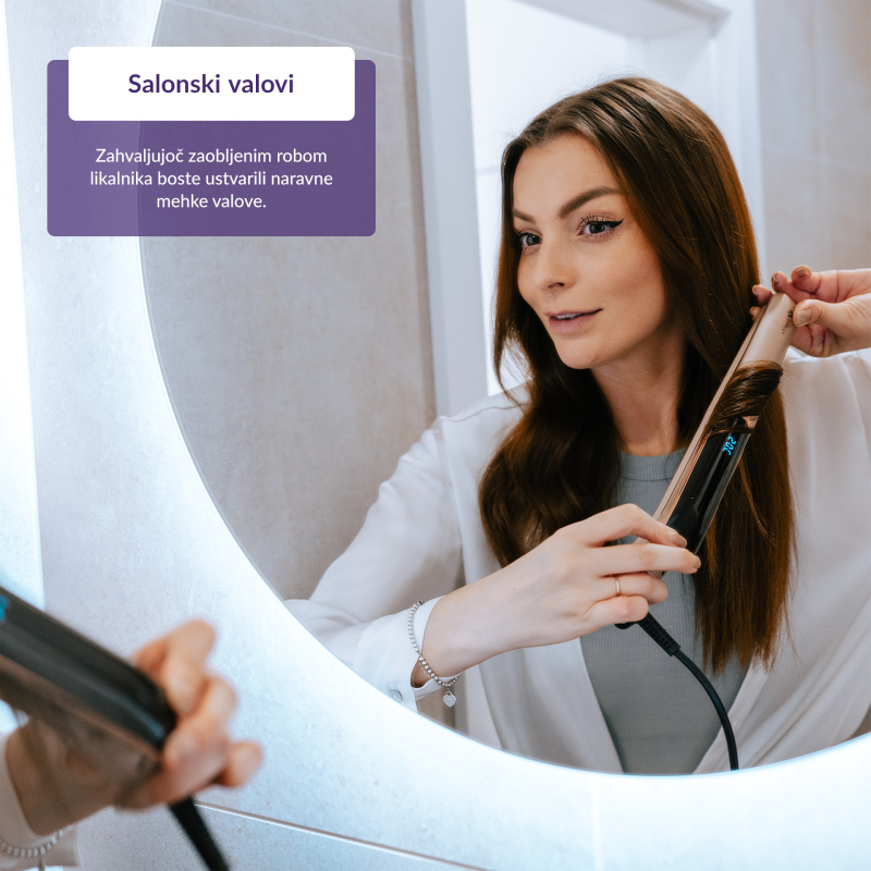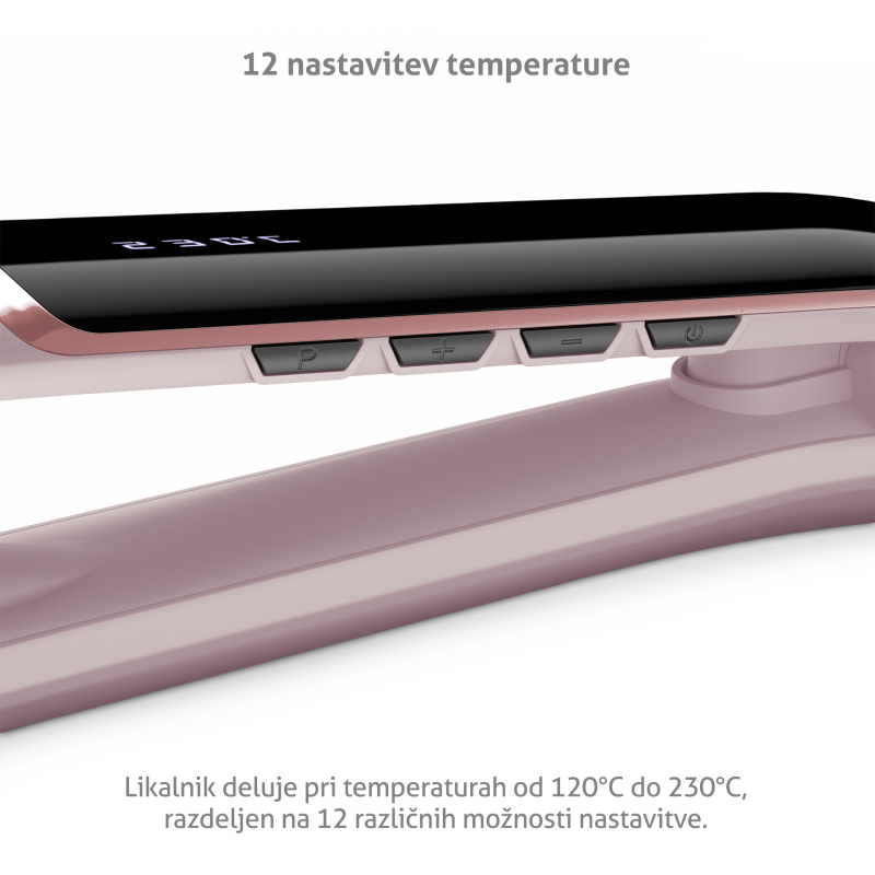 ® zagotavlja konstantno temperaturo ves čas likanja. Lasje so tako zaščiteni pred poškodbami.