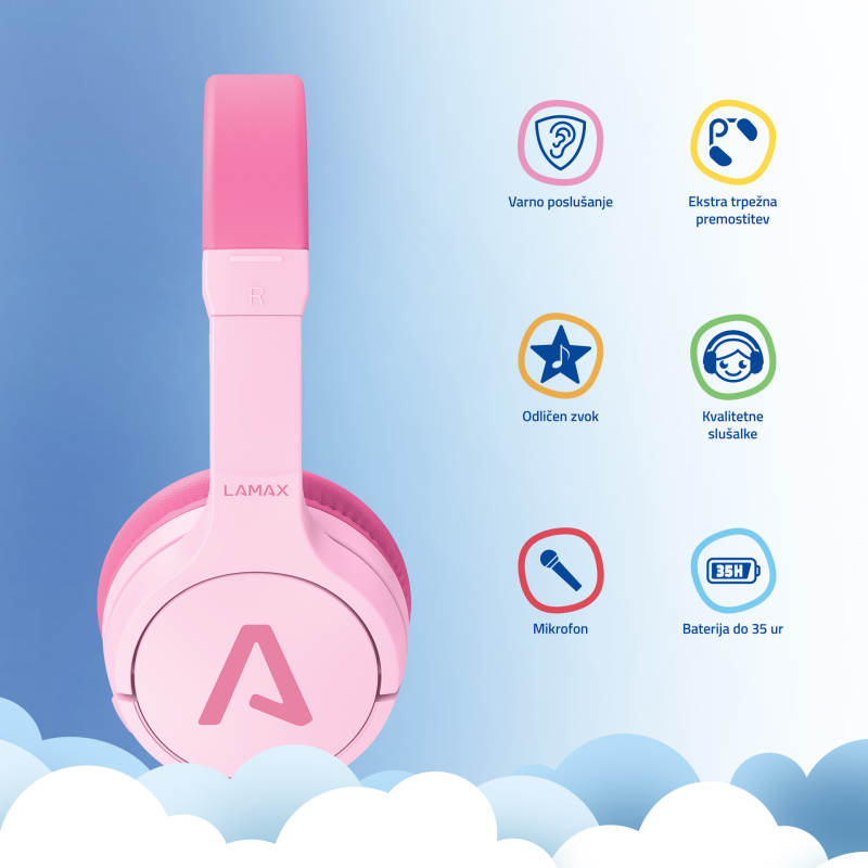 LAMAX BaseKid1 Pink Kakovostno poslušanje po meri otrok..