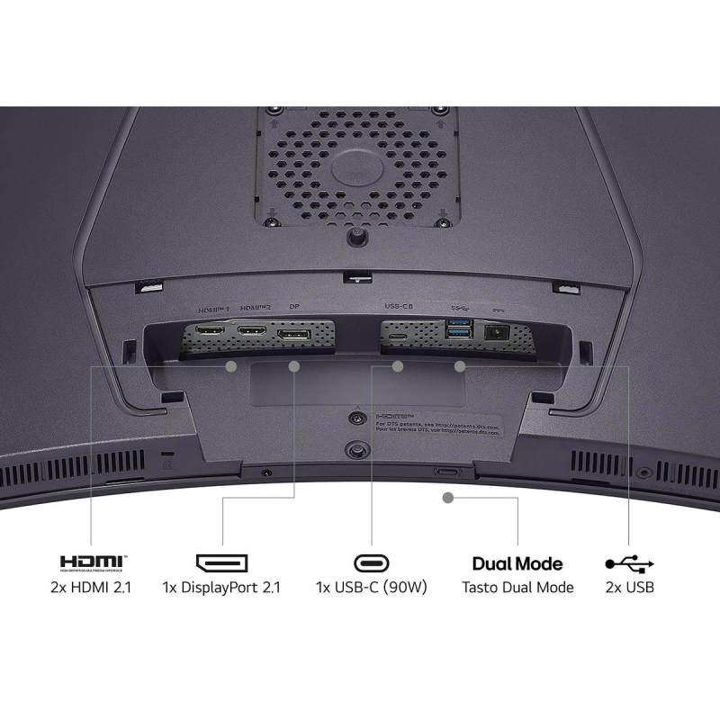 Napredna povezljivost vključuje DisplayPort, 2 × HDMI 2.1, USB hub in USB-C (90 W) za enostavno povezavo različnih naprav.