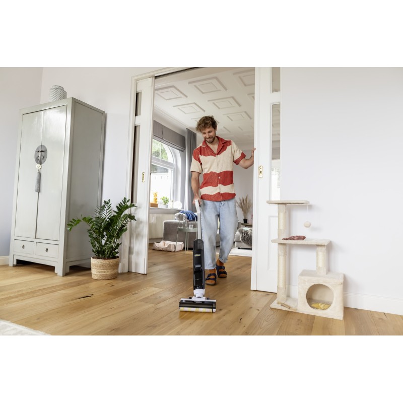 * Čistilniki tal Kärcher lahko prepolovijo vaš čas čiščenja, saj lahko običajno gospodinjsko umazanijo odstranite s tal v enem samem koraku, s čimer se odpravi potreba po sesanju pred brisanjem. /