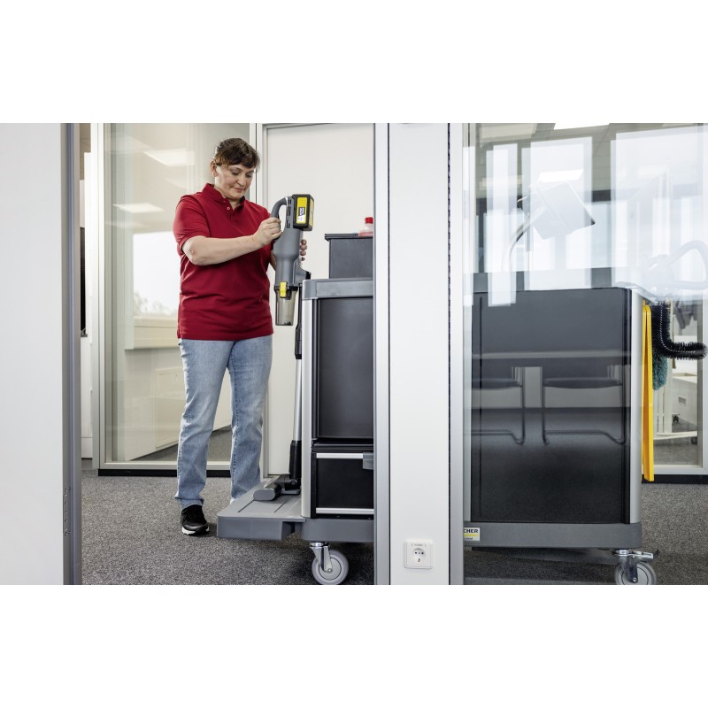 Zmogljiv baterijski sesalnik za suho sesanje LVS 1/2 Bp ponuja odlično sesalno moč. Ima šobo za špranje in aktivno šobo za tla za temeljito čiščenje vseh vrst tal in tekstilnih površin. Kärcherjeva ciklonska filtrirna tehnologija ohranja sesalno moč konstantno visoko. Zaradi kompaktne brezžične zasnove ter okretnosti in vsestranskosti je idealen za hotele, gostinstvo, trgovino na drobno in čiščenje stavb – popoln za točkovno čiščenje in zaradi neomejene svobode gibanja primeren tudi za stopnice. Vgrajeni filter HEPA 13 izpolnjuje najvišje higienske standarde. LVS 1/2 Bp je enostaven za uporabo: sesalno moč je mogoče nastaviti v treh stopnjah in v le nekaj preprostih korakih se cilindrični sesalnik spremeni v ročni sesalnik za oblazinjeno pohištvo in različne površine. Posoda za odpadke ne potrebuje filter vrečk, kar prihrani stroške in jo je mogoče higiensko izprazniti. Zahvaljujoč zmogljivim 36-voltnim polnilnim baterijam Kärcher dosega sesalnik odlične rezultate čiščenja. Opomba: baterija in hitri polnilnik nista vključena v obseg dobave in ju je treba naročiti posebej.