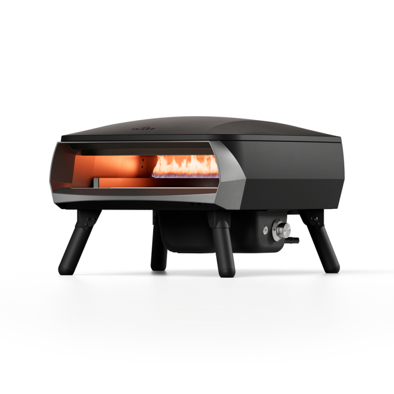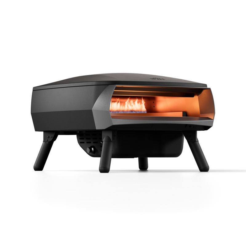 Vrteči kamen zagotavlja popolno enakomerno pečenost pice, dodatni gorilnik pod kamnom pa ohranja konstantno toploto za neprekinjeno peko. Skorja je hrustljava, sredica mehka – brez ročnega obračanja.