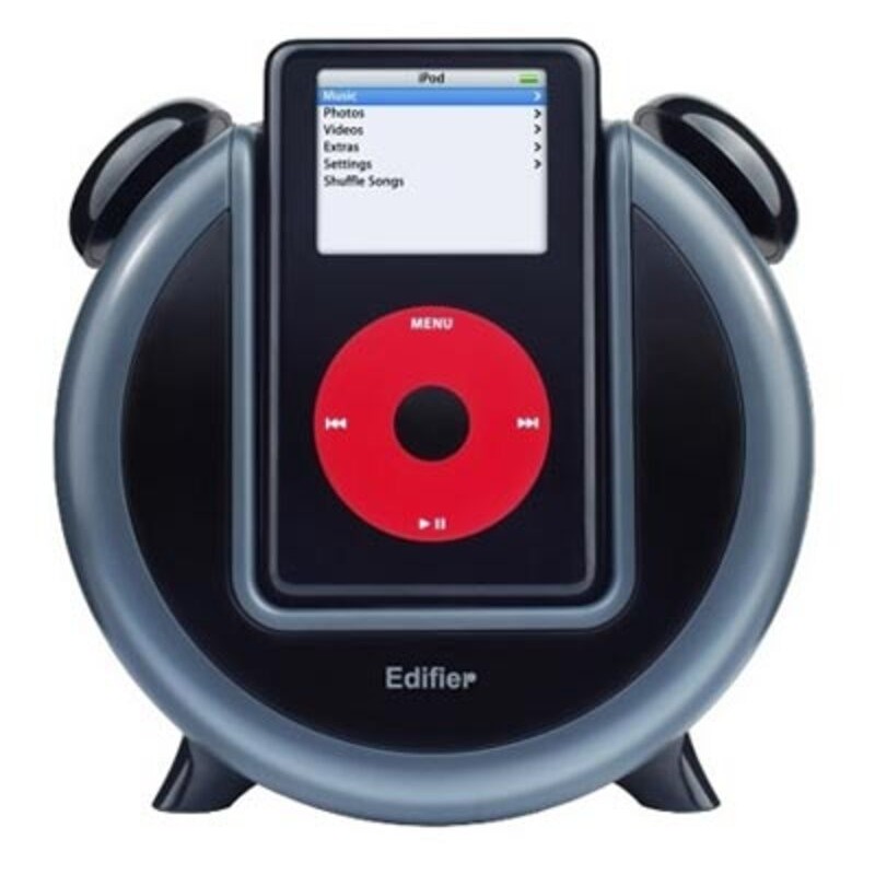 Komplet zvočnikov za iPOD predvajalnike Retro dizajn v obliki budilke, z snooze funkcijo Omogoča polnjenje vašega iPODa Spominska funkcija avtomatsko preklopi vaš iPOD v meni budilke Velik gumb za ura..