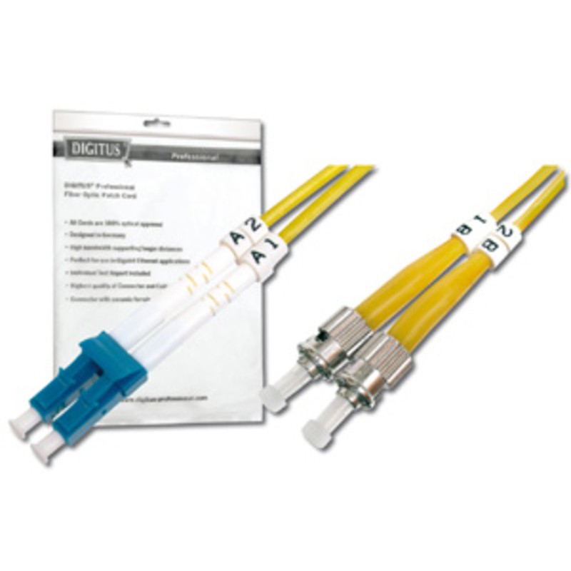DIGITUS Optični Patch kabel, LC ST, Single-Mode 09/125µ, Duplex Tehnični podatki: • Duplex Kabel • LSOH • Priključek s keramično konico • Premer kabla 3mm • Posamezno pakiran s protokolom pres..
