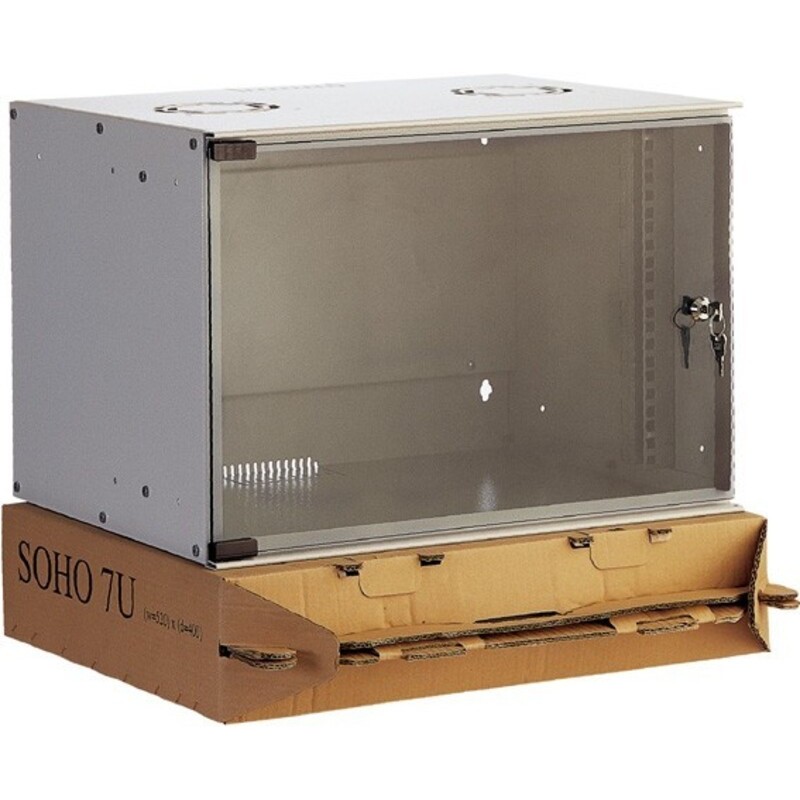 19" stenska omara 7U - kit izvedba, globina 400mm steklena vrata Višina 370 x Širina 540 x Globina 400 mm Barva: svetlo siva RAL 7035..