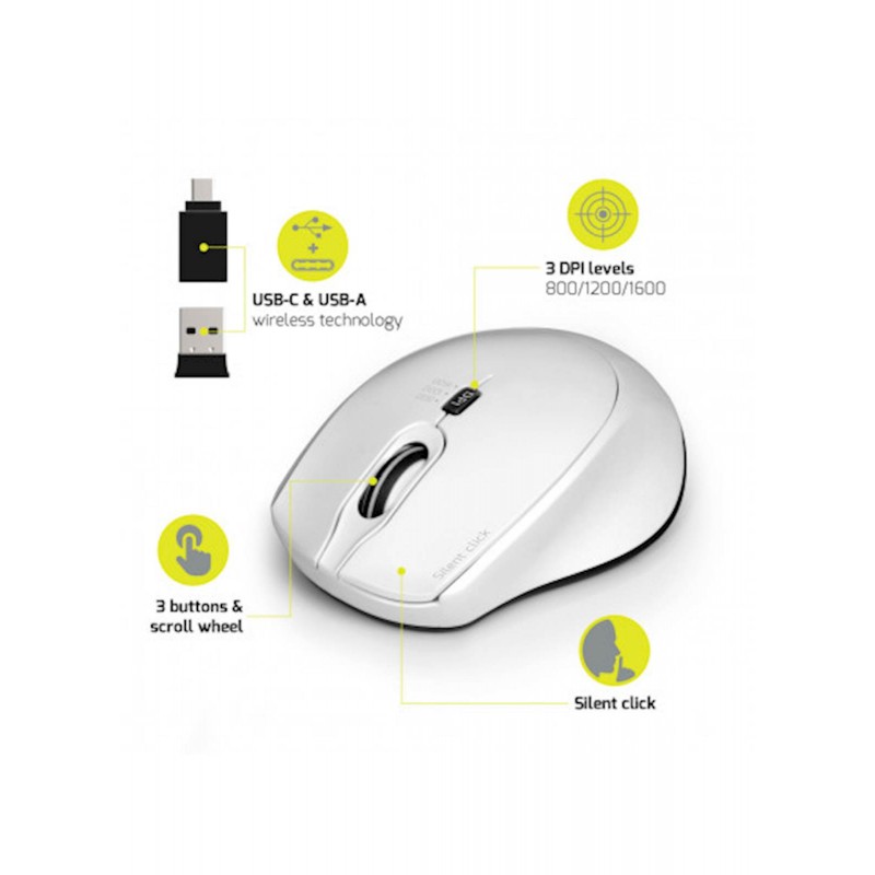 Miška PORT brezžična, USB-A & USB-C, tiha, bela