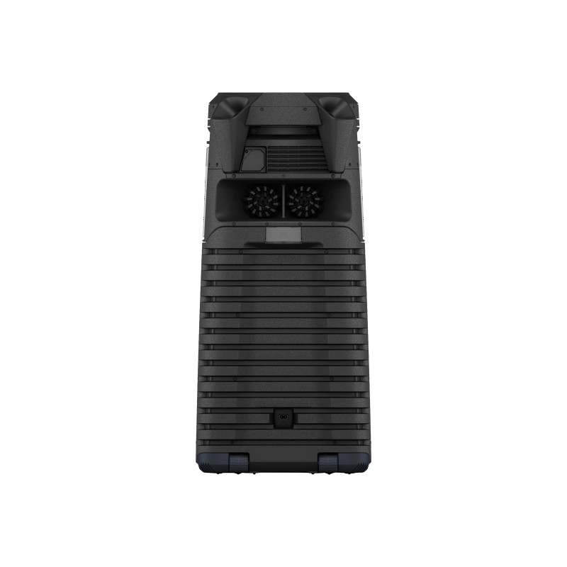 Visokozmogljiva lijakasta srednjetonca spredaj in zadaj porazdelita zvok, ki je čistejši, izboljšan pa je tudi zvočni tlak za bistvene srednje frekvence. To pomeni, da boste ob čistih vokalih priljubljenih skladb plesali ali prepevali, ne glede na to, ali ste pred enoto ali za njo, blizu nje ali daleč stran od nje.