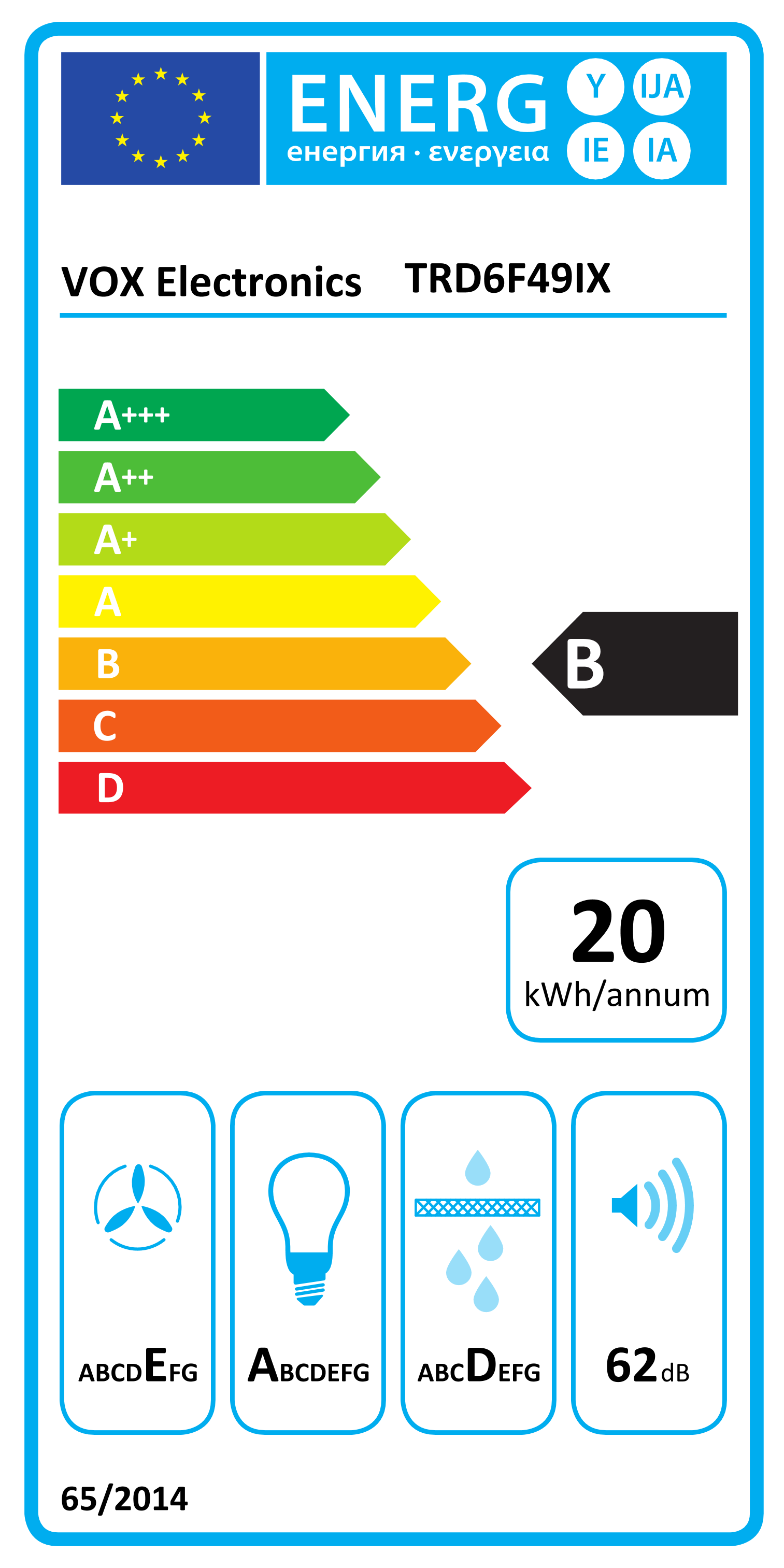 Z razredom energijske učinkovitosti B in letno porabo energije samo 20 kWh bo naprava TRD6F49W ne le učinkovito izboljšala kakovost zraka v vaši kuhinji, temveč tudi prispevala k varčevanju z energijo.
